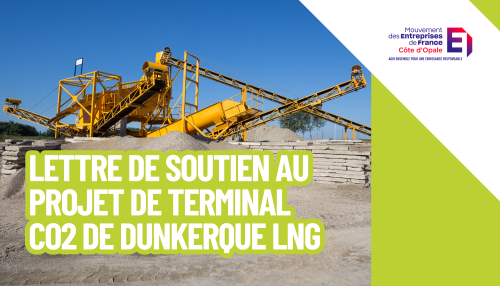 Le MEDEF Côte d'Opale soutient DUNKERQUE LNG, et AIR LIQUIDE FRANCE INDUSTRIE dans leur projet matérialisé par la Société Terminal CO2 Dunkerque alliant ambitions environnementales, valeurs sociétales et développement industriel territorial responsable.